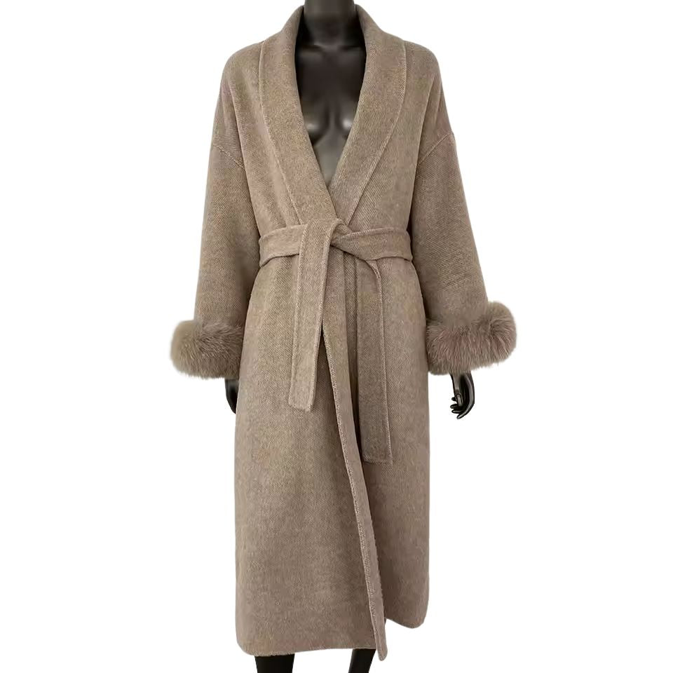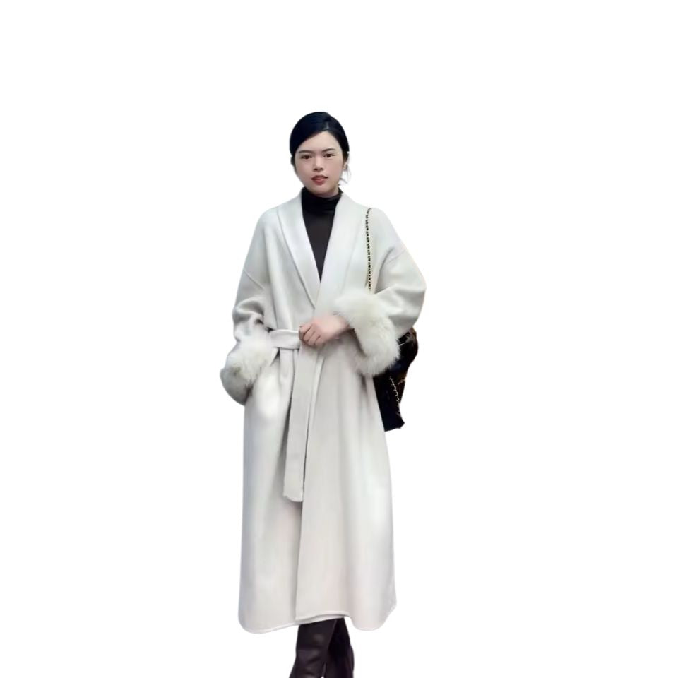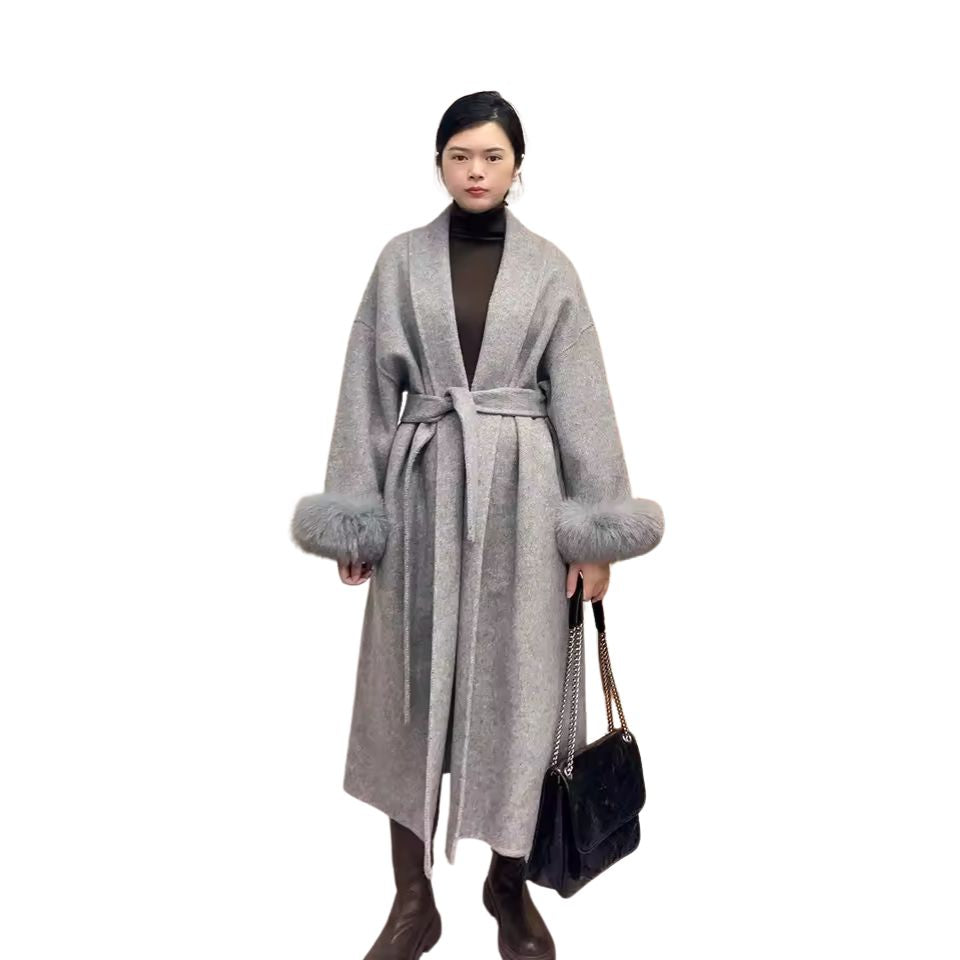 High-End Women's Wool Coat with Double-Sided Design and Luxurious Fox Fur Collar