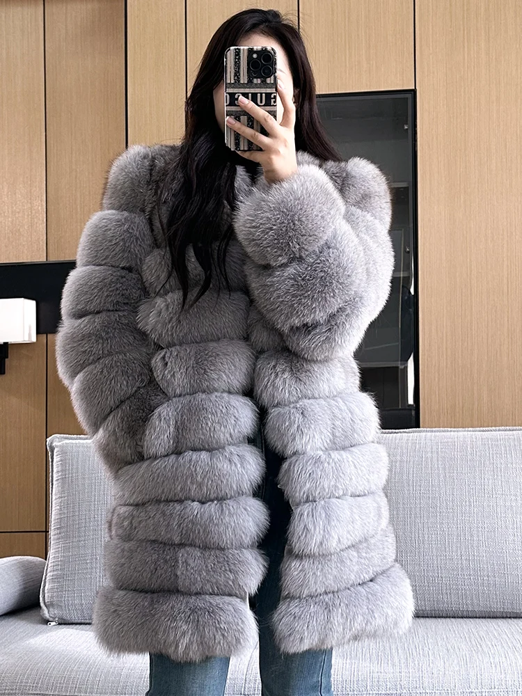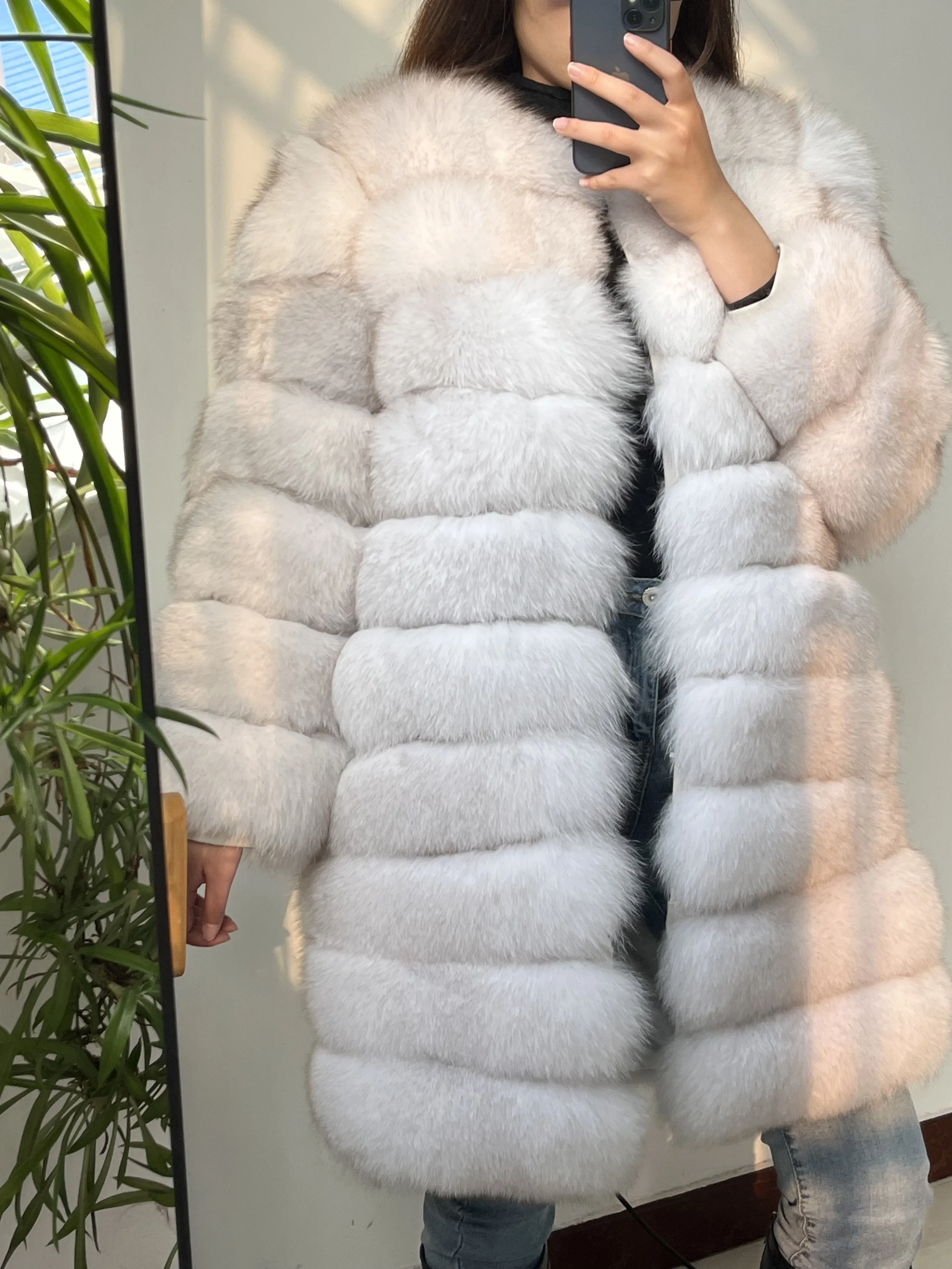 Luxurious Women's Fox Fur Coat – Elegant Winter Outerwear for Ultimate Warmth